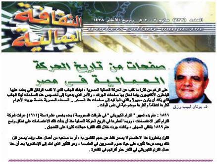 ونبدأ بعرض اجزاء من مقالات كبار الكتاب في مجلة الثقافة العمالية في محاولة لآستعادة خبرات الماضي و الاستفادة منها في الحاضر و المستقبل .